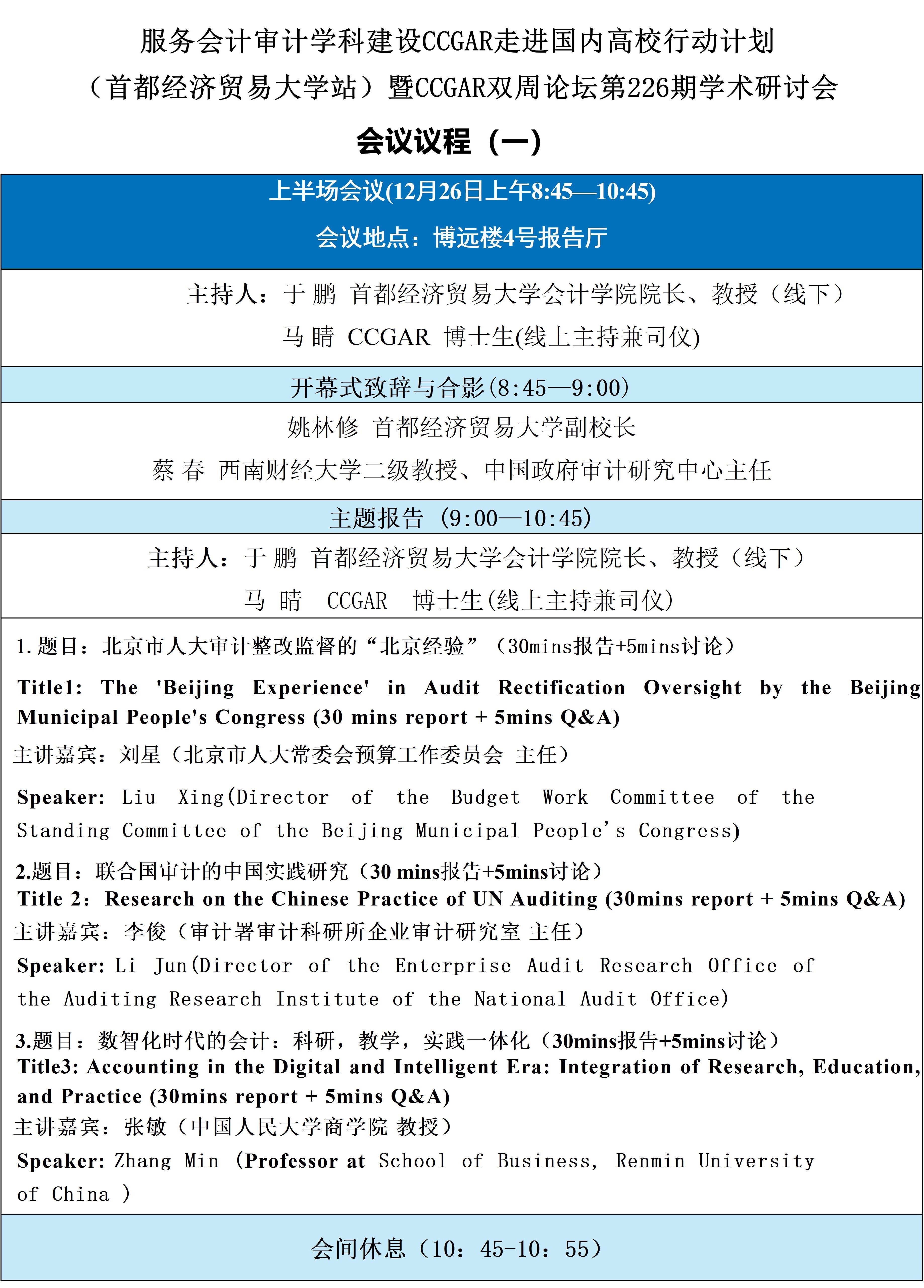 服务会计审计学科建设CCGAR走进国内高校行动计划暨CCGAR双周论坛第226期学术研讨会