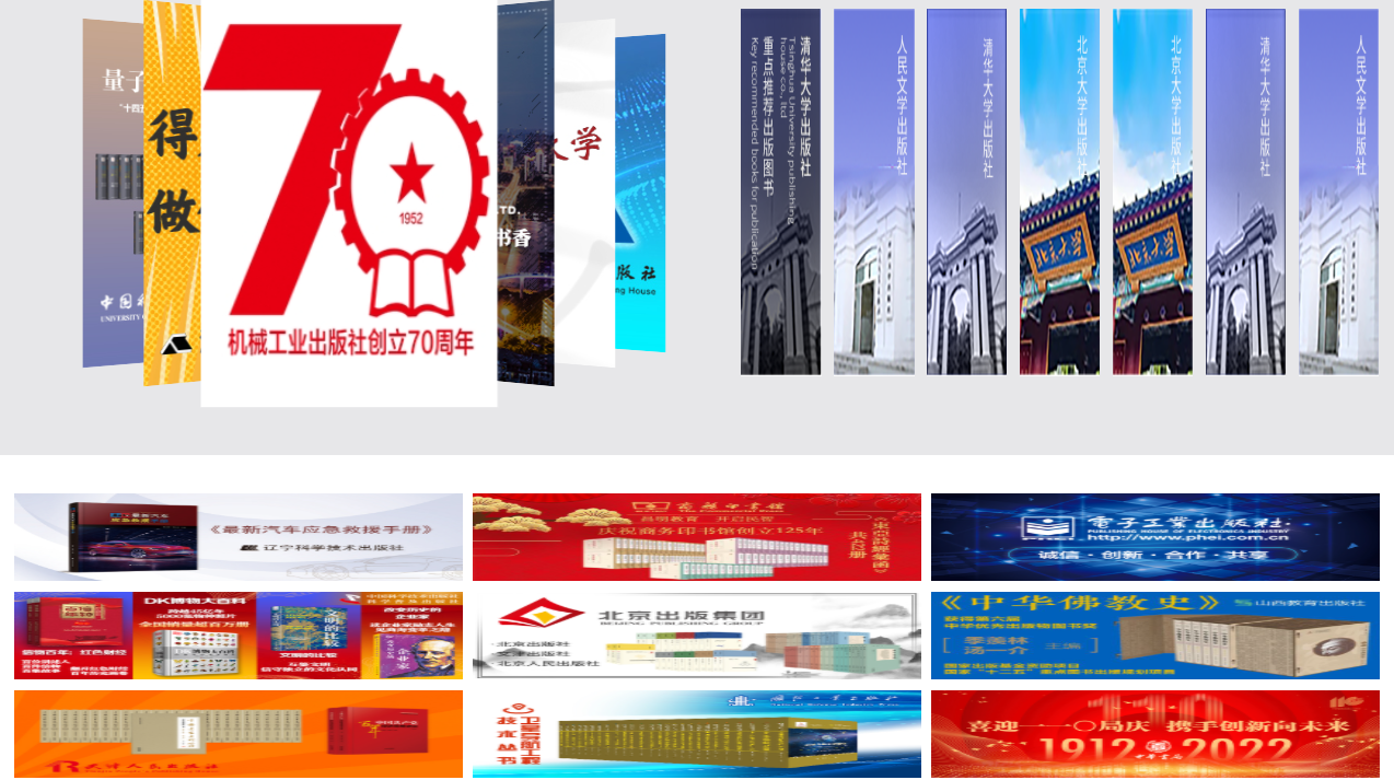 (1)出版社分会场:按出版社综合分类和出版公司名称展示各出版社图书,点击分类首先展示该类别下的出版社名单(按名称首字母排序),点击出版社名称即可进入选书界面。