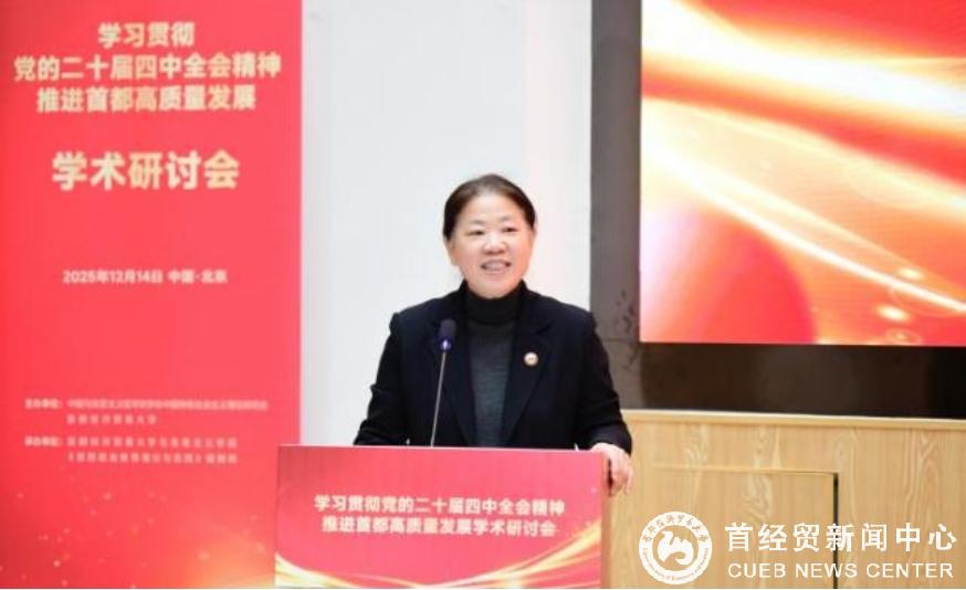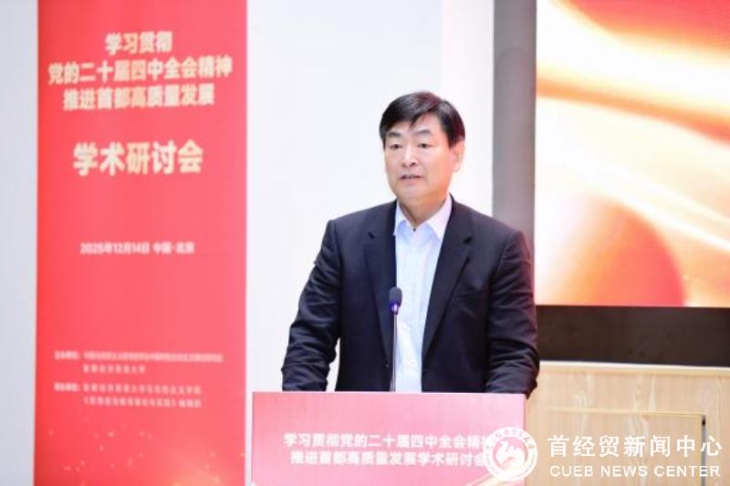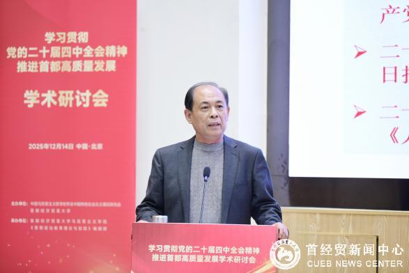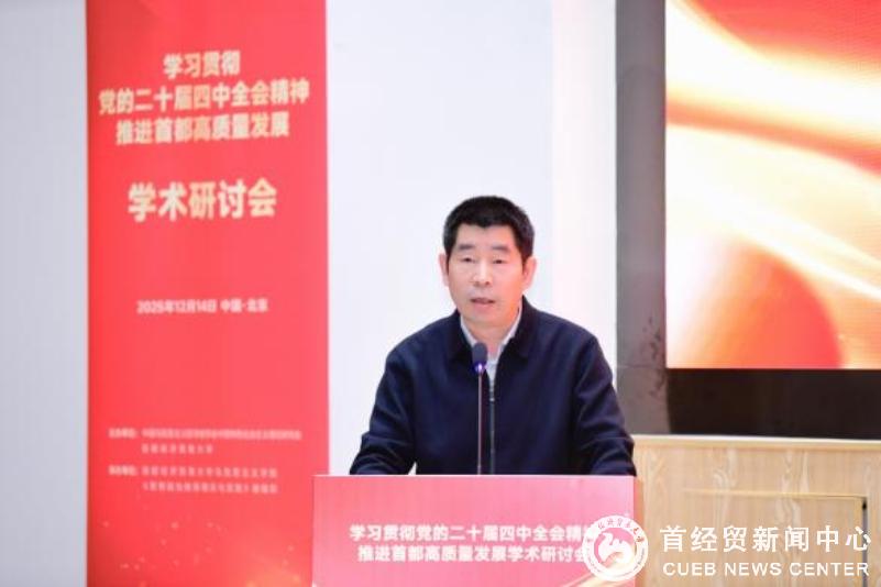 12月14日,由中国马克思主义哲学史学会中国特色社会主义理论研究会(以下简称“研究会”)与首都经济贸易大学共同主办的“学习贯彻党的二十届四中全会精神 推进首都高质量发展”学术研讨会在首都经济贸易大学成功举办。