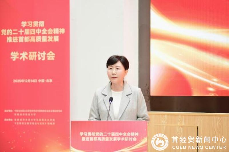 刘颖在致辞中代表学校向与会嘉宾表示了热烈欢迎和诚挚感谢。她指出,首都经济贸易大学作为北京市属重点大学,紧扣首都发展需求,在数字经济、特大城市治理、京津冀一体化建设、新质生产力等重点领域积极作为,已成为服务首都高质量发展的重要力量。刘颖强调,党的二十届四中全会为高质量发展提供了根本遵循和行动指南,学习好、研究好、阐释好、贯彻好党的二十届四中全会精神,为“十五五”时期推动首都高质量发展建言献策,是学校光荣的政治责任和学术使命。面对新时代、新形势、新要求,学校将始终坚守为党育人、为国育才初心使命,主动服务首都高质量发展大局,精准助力教育强国首善之区建设。她希望此次会议立足首都发展实际,聚焦如何运用马克思主义立场观点方法破解首都高质量发展中的重点难点问题,提出具有理论深度和实践价值的真知灼见,同时期待通过深入交流,推动马克思主义理论研究与中国式现代化、首都“四个中心”战略定位和“两区”建设更紧密结合,形成一批高质量的研究成果,为学习贯彻党的二十届四中全会精神提供理论支撑,为首都率先基本实现社会主义现代化贡献思想力量。